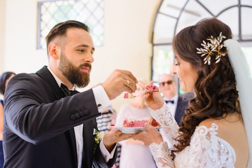 In fact, you might want to keep the top tier for your anniversary, Eileen Gray, pastry chef and blogger at Baking Sense, tells Bustle, since it's customary to eat a slice on the one year mark.