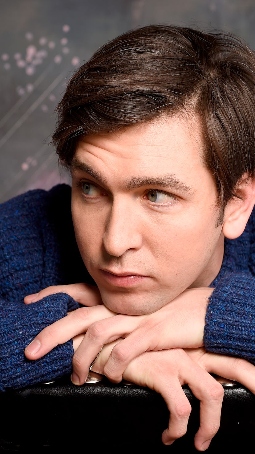 Like many settings that cater to the wealthy, the Bowery Hotel lobby feels pleasantly impervious to the outside world. Inside its crimson-hued interior dotted with mahogany tables and leather chairs, the realities of a muggy Wednesday afternoon in late-August New York City give way to an alternate, more luxurious one, where it makes perfect sense that an actual fireplace is burning for the sake of ambience in the dead of summer. When Nicholas Braun steps into the lobby wearing a white collared shirt, he fits in just fine — figuratively speaking, but also literally, as he folds his 6-foot-6 frame onto one of the low couches, his knees nearly reaching the height of the table in front of us.