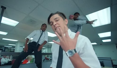 It's time to take a trip back to the witty walls of Dunder Mifflin, guys! Pop star, Austin Mahone, released his highly anticipated music video for new single, "Dirty Work," on Monday, July 27, and the video pays homage to the binge-worthy series, The Office. Channeling his best Jim Halpert, the video opens with Mahone being left in charge by a boss who perfectly encapsulates the irreverent persona of Michael Scott. Being that his boss has a "hot date," Mahone is left in charge of the office and asked to pull an "all nighter" in order to complete a report, which is titled — you guessed it — "Dirty Work." In the same vein as the 2005 sitcom, working all night doesn't involve much...well...work. Whilst crooning the lyrics to this addictive new track, Mahone engages in a steamy office romance, the staff take part in documentary interviews, and a full-on dance party breaks out. If every day I spent working at an office had been this legendary, I never would have suffered a case of the Mondays.