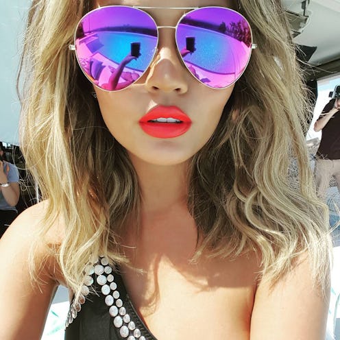 Whether you see her as a hot yet adorable style icon or an amazing body positive and supportive big sis figure to all her fans, Chrissy Teigen is, as millennials say, bae. And the fact that she's a huge foodie makes her even more amazing. At the photo shoot for her upcoming cookbook, the Lip Sync Battle host was slaying poolside in a summer must-have look, so here's exactly where to buy Chrissy Teigen's mirror aviators and her coral lip.