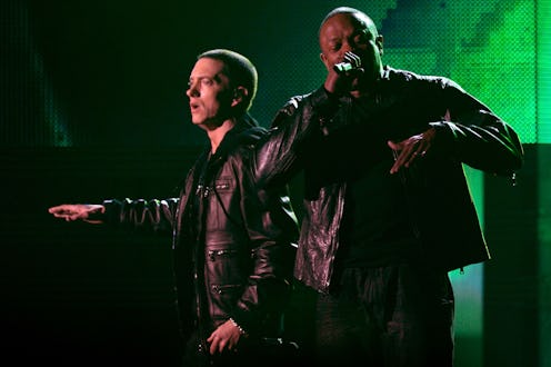 There should be no sore feelings over the pulling of Detox, especially considering that Compton looks like it could be poised to be Dre's best album to date. Several rap moguls will be featured on the LP, including Dre's former protégé and longtime friend, Eminem. Since first taking part in helming Eminem's breakout career in the early 2000s, Dre and Eminem have proven to be the ultimate dynamic duo with several standout collaborations. In celebration of Dre's upcoming release and reunion with Mr. Slim Shady, let's take a look at five of the best Dre and Eminem collaborations: