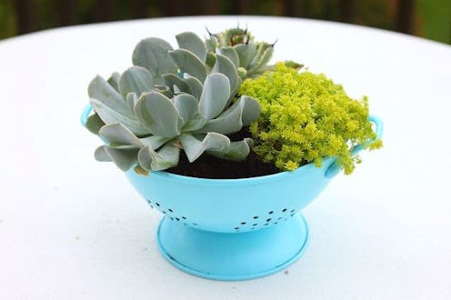 2. Turn a thrift store colander into a succulent planter