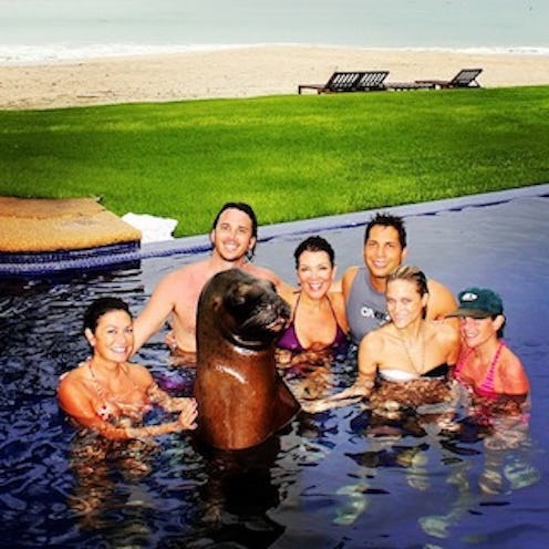 Kris Jenner and Ben Flajnik are my favorite maybe-power couple. Oh wait. The two insist they are just friends, so they must be just friends. Just friends who hang out with a sea lion: Back in Sept., Joe Francis's girlfriend, Abbey Wilson, posted a picture of Kris, Flajnik, a sea lion, and others hanging out in a pool in Mexico. For some reason, this months-old photo has been making the Internet rounds this week.