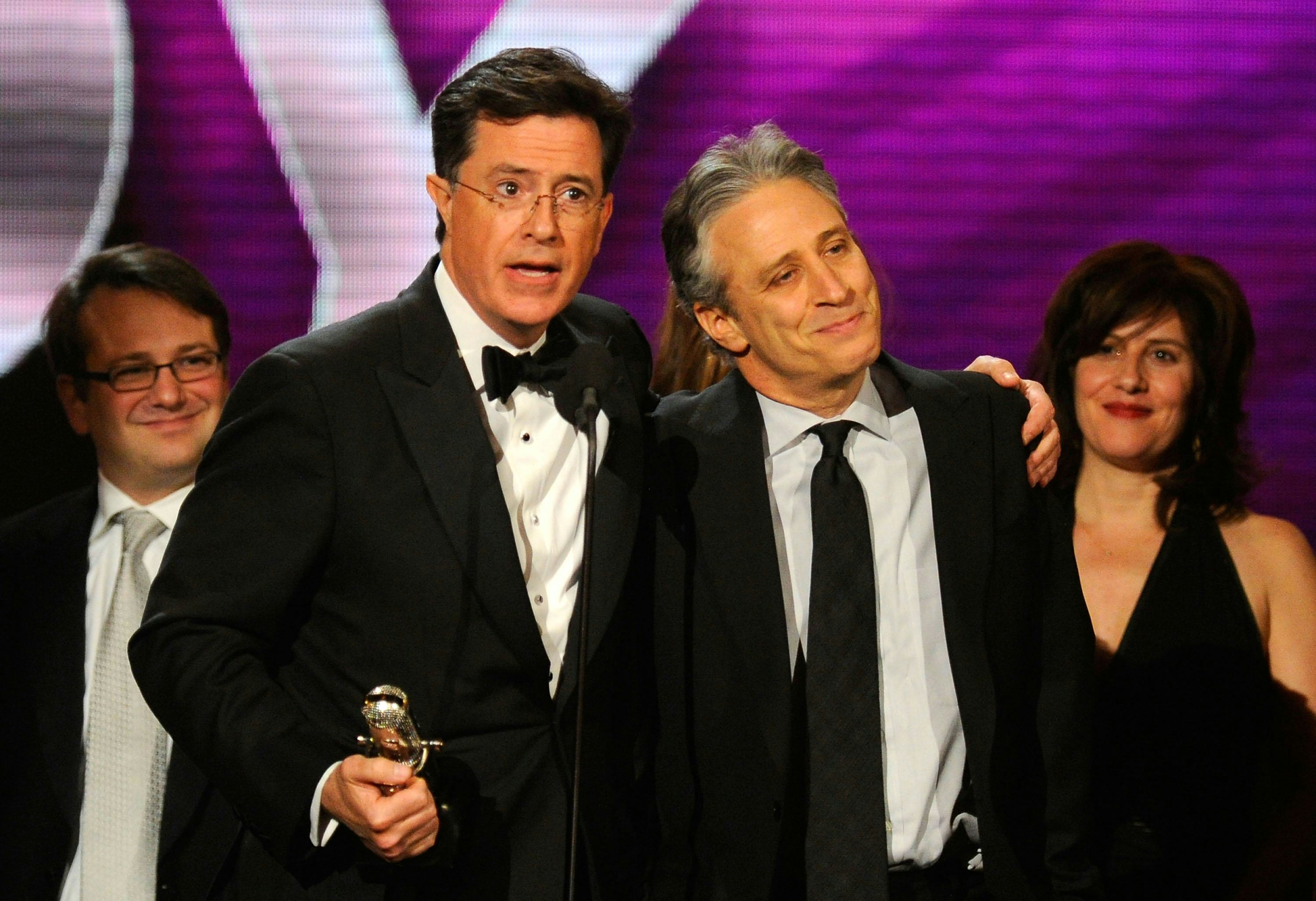 The Daily Show and Stewart helped launched the career of Colbert, who went on to host the very popular The Colbert Report and will soon take over legendary comedian David Letterman's late-night throne on CBS. Of course, Colbert stopped by Jon's desk one last time to say farewell using his famous knowledge of The Lord of the Rings. At first, Stewart though Colbert was referencing Cheers, when Colbert called himself Sam ("Am I Diane?" asked Stewart). Colbert corrected him: "No Jon, you are Frodo...One of us is adult sized and doesn't have hairy toes... Like Frodo, you are leaving us on a voyage to the undying lands... for 16 years you and your basic cable fellowship of funny cluthed that ring and trudged up the steep steps of mount doom..."