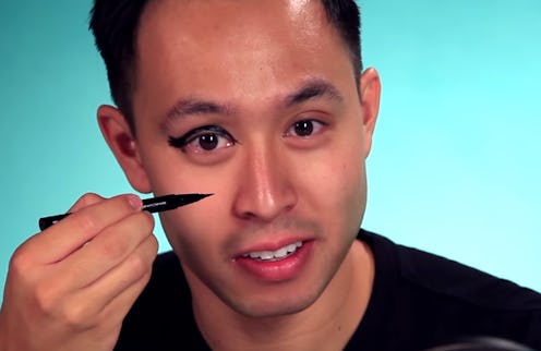 Using liquid eyeliner is an art. It takes lots of time and effort to master, even for seasoned eyeliner veterans who do this daily. So it's no surprise that when guys tried liquid eyeliner for the first time, most of them ended up looking like inky, hot messes. Welcome to another hilarious installment of the BuzzFeed series where gentlemen are always game to try false eyelashes or attempt to navigate life with fake nails.
