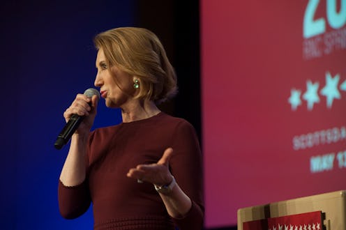 As the only woman in the field of people running for the Republican nomination for president, Carly Fiorina is in the unenviable position of being treated as the "female candidate," which means she'll get questions about things like the color of her nail polish (yes, in 2015. Sigh). But what does Fiorina think of Donald Trump? Prior to his controversial remarks about Fox News' Megyn Kelly and the "blood coming from her... wherever," Fiorina's reaction to Trump's performance during the first GOP debate was somewhat muted.