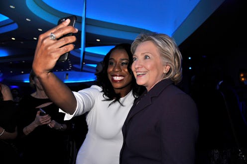 There's nothing more "everyday" than taking a selfie, which probably explains why Democratic front-runner Hillary Clinton, who's vowing to fight for the "everyday American," looks like a seasoned pro with her selfie angles. In reality, all of the 2016 presidential candidates are subject to today's selfie culture whether they love it or not, and the campaign trail is filled with eager supporters looking to snap their personal photos. But these Hillary Clinton selfies show how she's amping up the game — and that there's no one too famous to ask her for one.