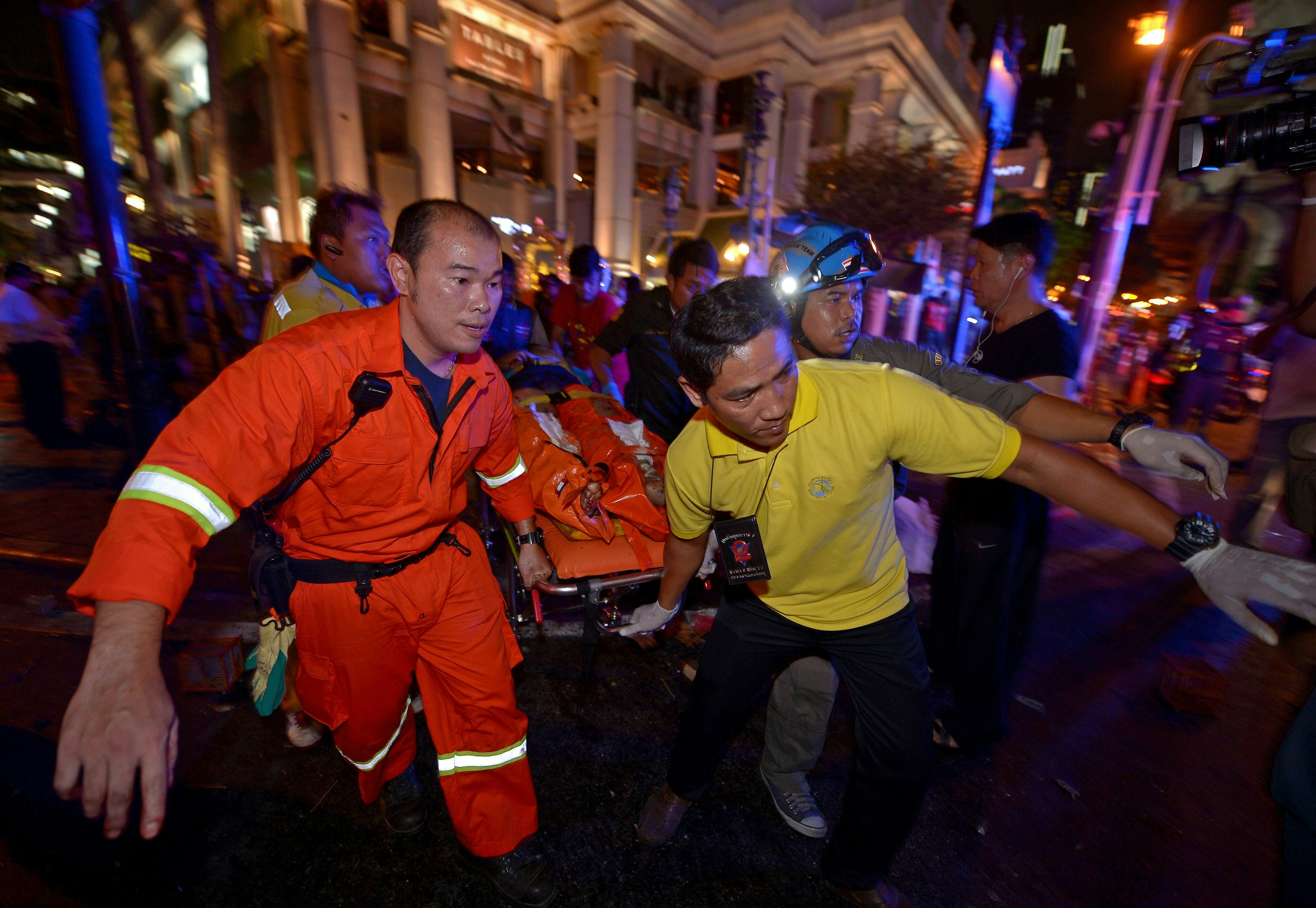 In an "unprecedented" attack Monday, a bombing at a popular Bangkok tourist spot left at least 22 people dead and another 123 injured, authorities said. Eight foreigners were among the casualties, including three Chinese, two Hong Kong citizens, two Malaysians, and one person from the Philippines. The photos of the Bangkok bombing show a devastating scene in what is Thailand's deadliest terrorist attack in recent memory.