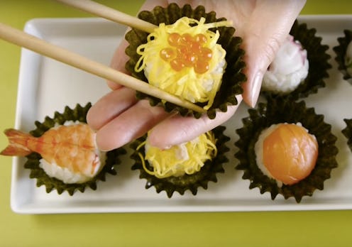 I always imagined utopia as a place where we ate solely sushi and cupcakes, but today my idea of utopia changes. While I am still hell bent on Chris Pratt being there to braid my hair and Taylor Swift on retainer to narrate my life through song, it turns out I won't be needing those sushi and cupcakes — at least, not now that cupcakes made out of sushi exist. They're actually officially called "Temarizushi Cupcakes and Soy Sauce Foam Espuma," and their magic comes to us by way of the Mosogourmet YouTube channel. Mark today on your calendars, fellow humans, because this is the day you start living your best life FOR REAL.