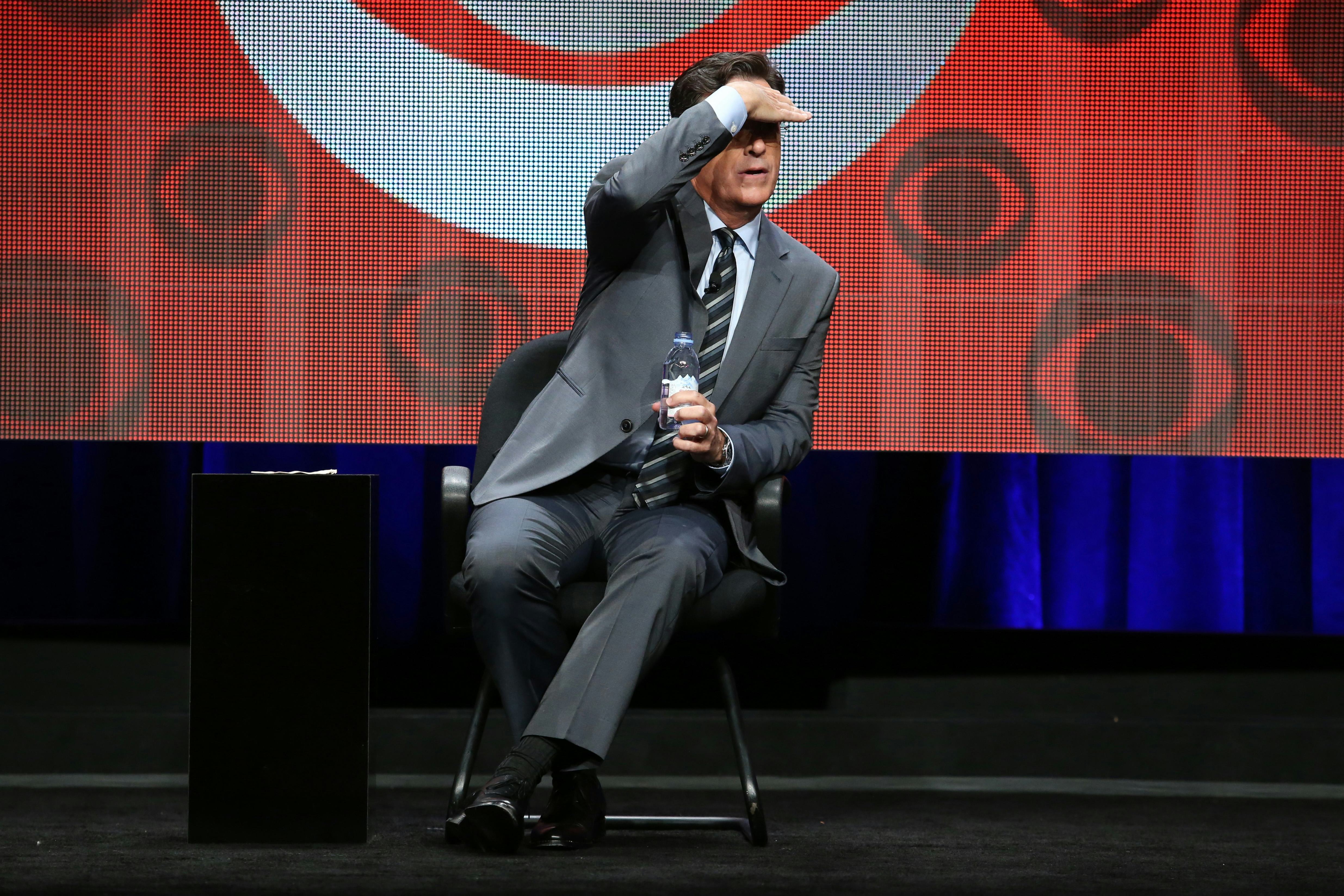 That's what is so great about Colbert: even when he was deep in his ridiculous, conservative, egomaniacal character on The Colbert Report, his inner fanboy always came out when he interviewed people he truly admired and respected. Colbert has many passions: politics, music, theater, comedy, God, science, books, fantasy worlds — and he invited all kinds of guests to his stage, and thankfully he's brought that same humanist eclecticism to The Late Show. He gets excited about other people's talents, and his reverence goes further: the musical guests Jon Batiste and Stay Human first appeared on The Colbert Report in 2014, and the host was so impressed by them that he asked Batiste to be the leader of his house band on The Late Show.