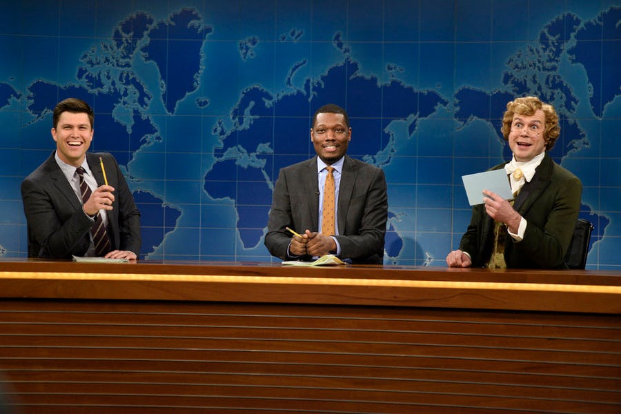Even though this happened after Jimmy Fallon had left Saturday Night Live,doing a bit about being divorced and naming their child after Lorne Michaels makes them more fun to conceptualize as fake news anchors. Weekend Update may be a familiar format, but it is as much of a sketch as anything else. I want to see more of a defined comedic dynamic between Michael Che and Colin Jost. They already have developed relationships with the audience and with many of the guest correspondents, but not so much as a team. Here's hoping that Season 41 brings us all of that and more!