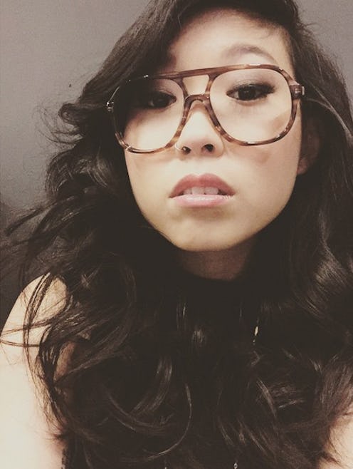 Personally, I adore the pair she often wears. It's an integral part of her look, IMO. The old fashioned, oversized frames are a far step from the nerd glasses of yesteryear, and a really fun but chic sartorial touch. A sense of personal style really shines through whenever Nora Lum dons her glasses. Although she lost her beloved frames of five years on an airplane in July of this year, let's take a look at seven times she makes glasses-wearing indescribably cool.