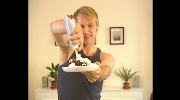 Via HuffPost Comedy, I was introduced this morning to a beautiful relic of early-2000s culture called Incredible Instant Adoring Boyfriend. The DVD turned YouTube upload features a shirtless, hot-ish British guy — the accent pushes him past "ish" territory but the shirtlessness brings him back — who lifts weights, irons, and reads magazines while spouting off all sorts of cliched ideas of what women want to hear.
