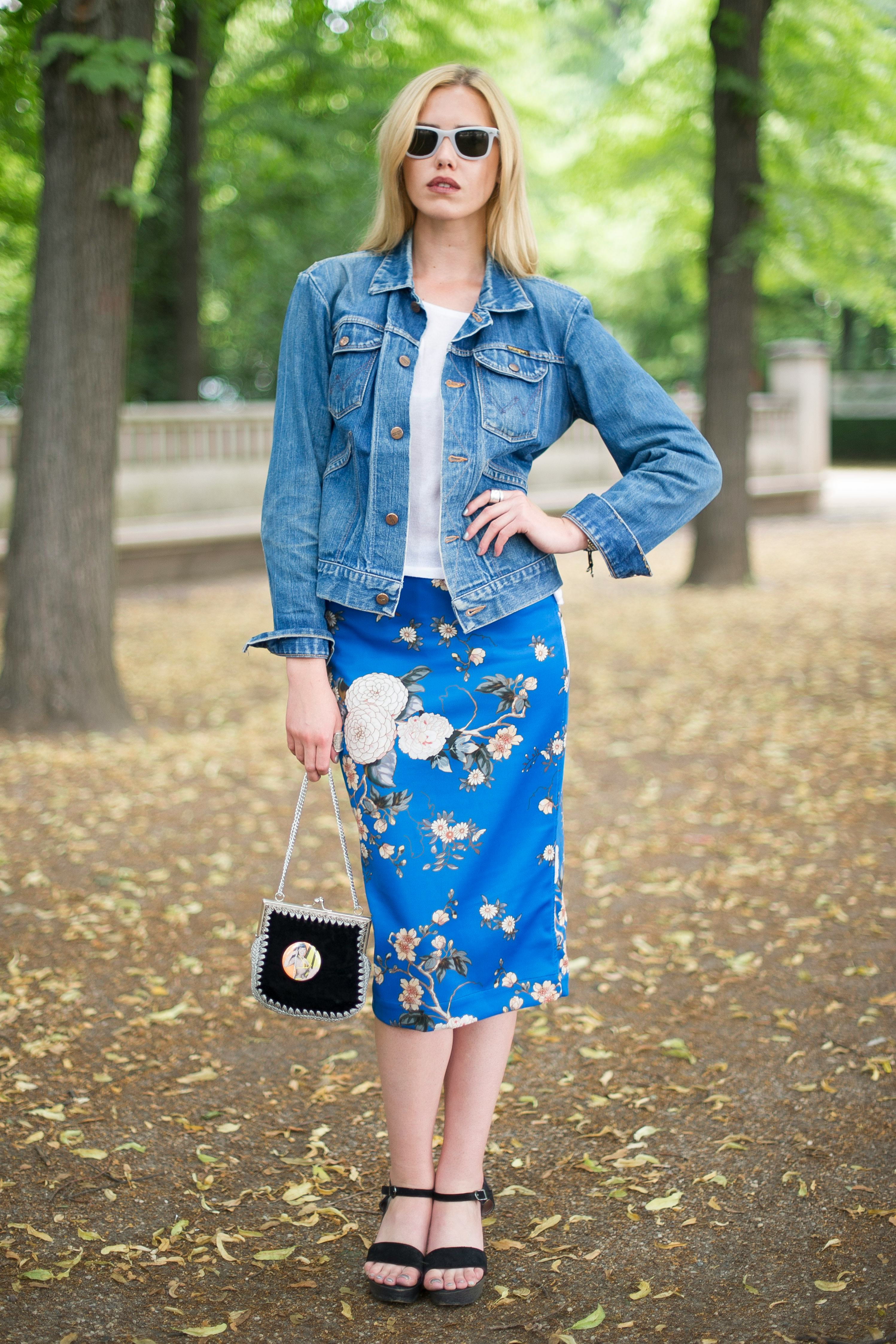 4. Denim Top & Colorful Skirt