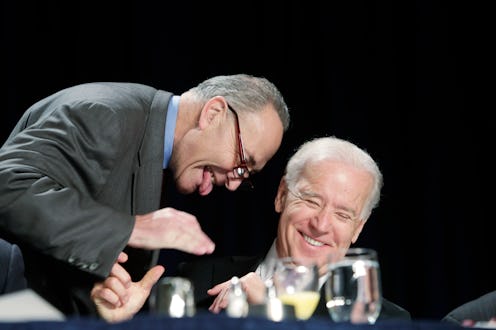 On Thursday night, Stephen Colbert will sit down with yet another prominent politician, after interviewing 2016 presidential candidate Jeb Bush on his Tuesday premiere. However, this interview will most likely be filled with a lot more chucklesome moments. That's because Colbert's next guest will be Vice President Joe Biden, a man who's known for his political position first and his sense of humor at a close second. Biden's jocular nature is all part of his charm package, which is unparalleled in Washington (and beyond). But how do his jokes stand up against those of a seasoned comedian? Judging by some of his past zingers, Biden could give Colbert a serious run for his money.