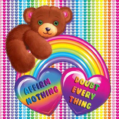 Growing up, you couldn't swing a stick without hitting a notebook swathed in rainbows and pop art panda bears. And now, thanks to the acerbic brilliance of the Nihilisa Frank Tumblr, '90s kids are once again diving into that saccharine world — only this time, we're plunging into the dark abyss of our souls. For those of us who always felt the crushing weight of desperation staring back from the giant twinkly eyes of Lisa Frank's iridescent unicorns, this new Frank confirms our suspicions: Life is a but a tortuous crescendo into death.