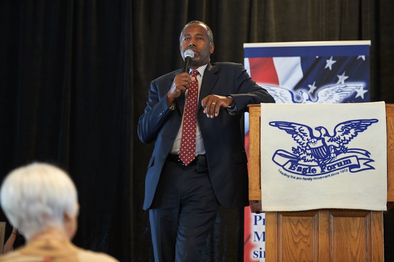 Carson is one of the many 2016 Republican presidential candidates who has led calls to defund Planned Parenthood. Carson, who is a doctor, let's remember, actually favors protecting fetuses over the lives of women who might seek abortions. Carson has said he would support bans on abortions after 20 weeks of gestation, that he does not support abortion for "convenience" (because, obviously, there's such a thing), and that the '90s deregulation of abortion led to the 2008 economic crisis, according to On The Issues. Carson even once said that preserving fetuses should be more important than preserving endangered species, according to Politico: