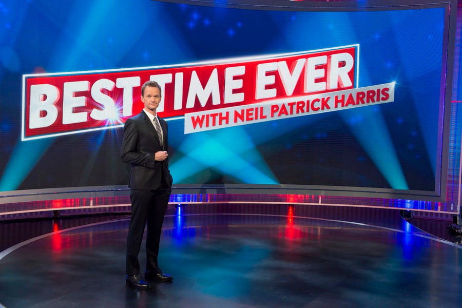 Neil Patrick Harris sang, danced, climbed a tower, bounced on pogo sticks, and generally had a blast during the Tuesday night premiere of Best Time Ever on NBC. The variety show featured lots of special guest stars, like Reese Witherspoon as the announcer, legendary singer Gloria Gaynor, and popstar Nicole Scherzinger. At the end of Best Time Ever , British comedians Ant and Dec made a cameo appearance to close out the first episode. Why does this matter? Well, NPH's variety show actually has British roots — it's based on Ant and Dec's Saturday Night Takeaway , a variety show with pranks and fun stuff that ran for 12 years in the UK.