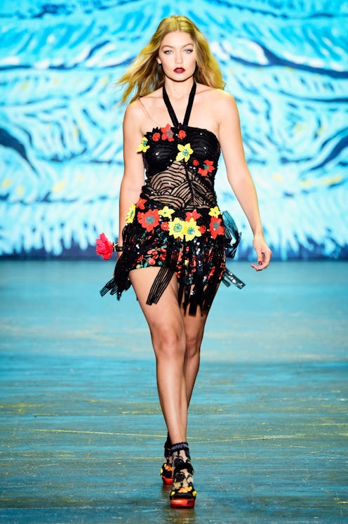 I know we've all been talking a lot about this It girl lately, but it has to be said, again: Gigi Hadid stole the show at Anna Sui in a sequined ensemble paired with a killer vampy makeup look. There's no question that all the models have been slaying at NYFW, but Gigi rocked a look that was so awe-worthy. I mean, the social media superstar and supermodel usually makes a statement wherever she goes, but she definitely stopped everyone in her tracks on Wednesday's runway.