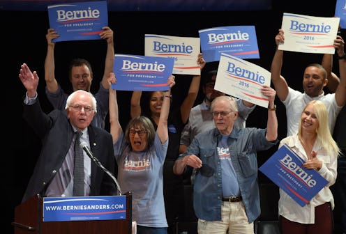 In his Friday night appearance on The Late Show With Stephen Colbert, Bernie Sanders briefly opened up about why he doesn’t consider being called a "liberal" or "socialist" insulting. When asked by Colbert why he wouldn't take the labels as the "insults they're meant to be," Sanders had a brief laugh and elaborated on his belief that society should represent "working people and the middle class, rather than large campaign donors." Essentially, to Sanders, if belief in equal representation for all means being pinned with names that are meant to be insults, then so be it: He wants us all to know he has enough confidence in his values and ideas to accept any label. In his response to Colbert, Sanders taught us an important lesson about confidence, one of many he's taught us over and over through his approach to campaigning.