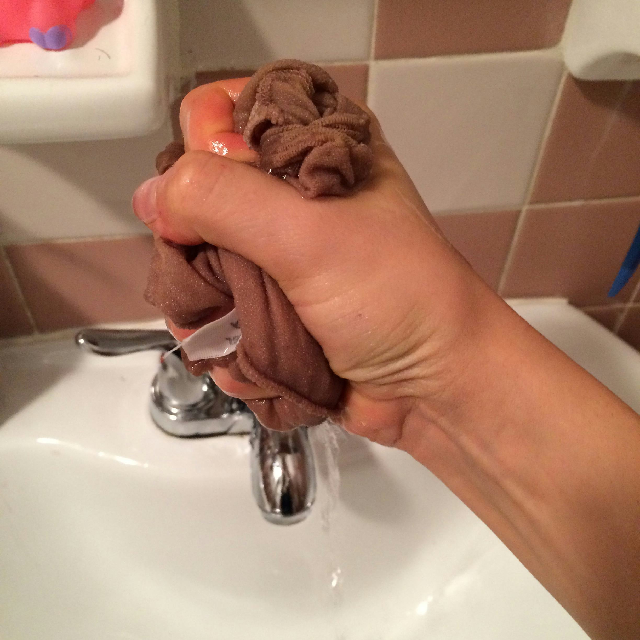Roll the tights into a ball and squeeze dry.
