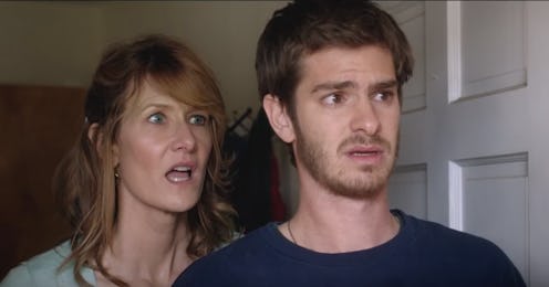 With 99 Homes, writer-director Ramin Bahrani tells the moving story of how the housing crash of 2008 almost destroys the lives of one small family. Andrew Garfield stars as Dennis Nash, a young father who works construction to take care of his mother, Lynn (Laura Dern) and his son, Connor (Noah Lomax) — at least, he used to. With the economy crash went all of Dennis' old jobs, and gone with them was his livelihood, and now, his home, which is repossessed by Rick Carver (Michael Shannon). What follows is a conflicted tale of survival, in which Dennis begins working for Rick and his real estate business, repossessing houses for banks, essentially being paid to evict others from their homes, just as he was from his. The trailer teases that the movie is "inspired by true events," but, is 99 Homes based on a true story? In actuality, the events and characters of 99 Homes (out Sept. 25) are not based on any one story or real people, but the hardships depicted on-screen are painfully true to life.