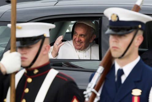 Nothing says "I am a normal human" more than riding in a Fiat, even if you're the Pope. Pope Francis' historic visit to the United States kicked off in his usual, frugal fashion when he hopped into a hatchback, charcoal grey Fiat at Andrews Air Force Base in Washington D.C. The mini Popemobile turned more than a few heads, but it's exactly the symbolic gesture we should have expected from the modest Vatican leader.