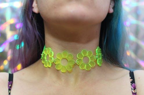 Complete with dangling pearls, crosses, and ying and yang pendants, fast fashion has been virtually wallpapered with black tattoo chokers in 2015. But what about their zanier, fun-loving sibling, the rainbow choker necklace?