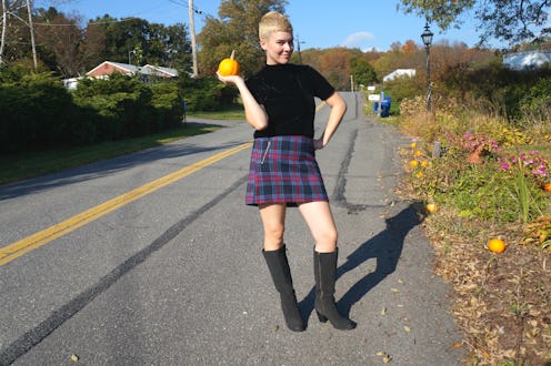 Like any good '90s child who is obsessed with Clueless, I chose a plaid mini skirt. I also chose a velvet turtleneck top, although I stopped short of adding brown lipstick and a choker (it's not a Halloween costume, after all).