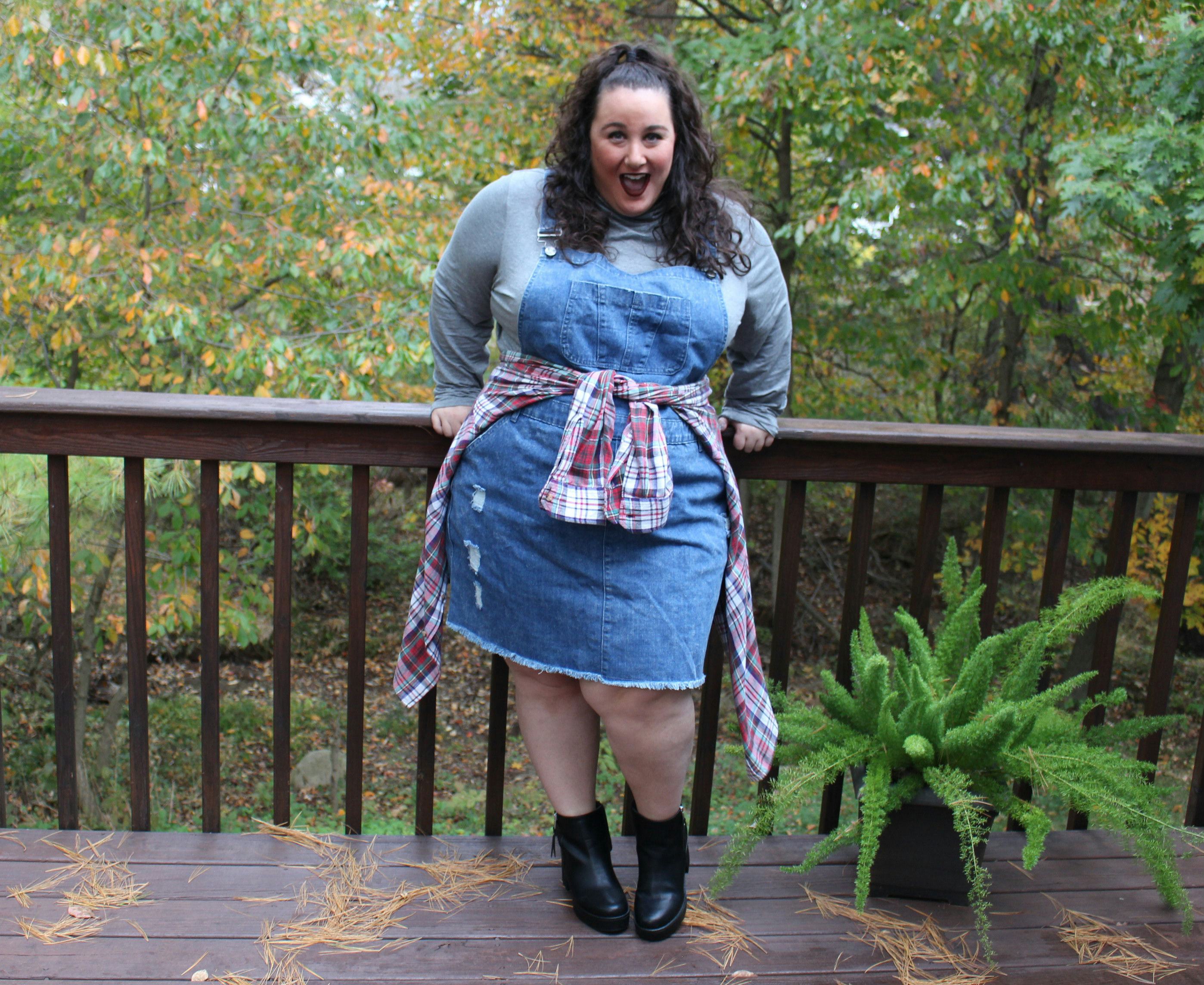 When I got this denim pinafore dress from an end of season sale at City Chic, I wasn't so sure how I would style it after summer. But once I thrifted this super soft gray turtleneck, I grabbed a flannel and ended up looking very Topanga Lawrence from Boy Meets World.