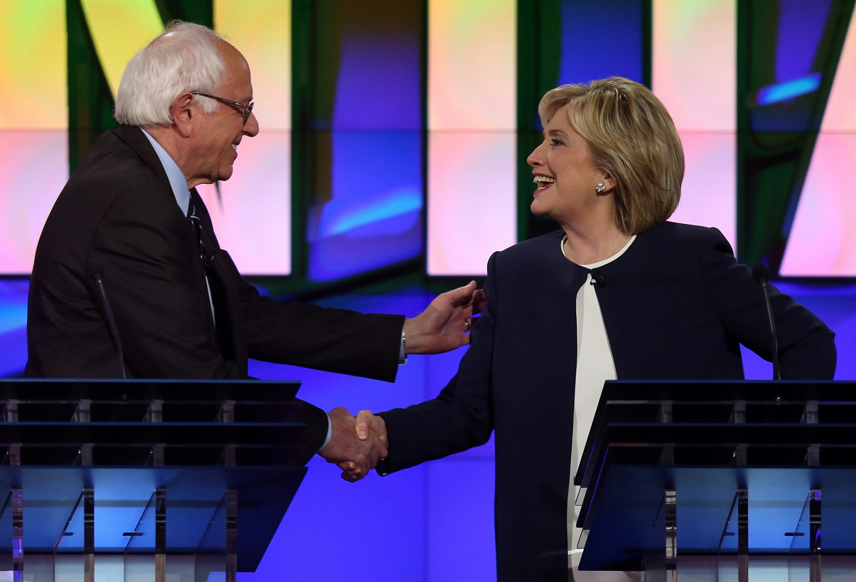 Former Secretary of State Hillary Clinton shocked viewers during Tuesday evening's debate among Democratic presidential hopefuls when she issued a sharp criticism of Vermont Sen. Bernie Sanders' views on gun control. Clinton said that Sanders is "not at all" tough on gun control, which was surprising, since the pair hasn't attacked each other much on the campaign trail as of yet. Clinton and Sanders have a long-standing working relationship, and despite Clinton's comments on gun control, the pair agree on many issues. So what exactly would a Clinton/Sanders ticket look like? Let's examine the candidates' similarities and differences, in case they eventually become running mates.