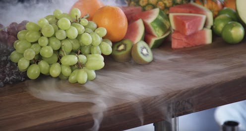 So what's the science behind fizzy fruit? The process of actually creating it is just as interesting as the carbonated fruit itself. It involves dry ice, which becomes gaseous carbon dioxide as it warms up, as Chef Chris Young explains. You had me at "dry ice", Chris. The carbon dioxide then dissolves into the water inside the fruit. But how do you get it in there? Can we do this at home? So many questions! Excuse me while I Google "Where to buy dry ice and grapes in Queens." Meanwhile, here are the instructions from ChefSteps on carbonating fruit, just in case you wanted to give it a shot: