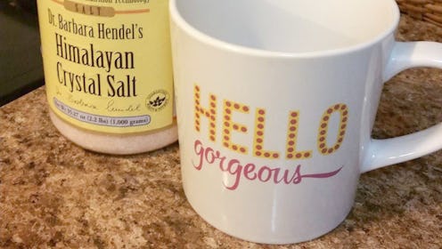 My first order of business in adding salt to my coffee was determining how much salt I should be adding. What I discovered, though, is there is no tried-and-true approximate measurement. Rather, the overwhelming consensus was simply to "add a pinch," but I didn't sweat the vagueness of this detail. I'm Southern — our cookbooks are filled with dashes, pinches, teensy bits, and skoshes. Similarly, this experiment relies on a perfectly imperfect system. I can dig that. Next, I chose which coffee with which to test the theory, eventually settling on a garden variety instant brew medium roast. A quick forage of my pantry yielded two different types of salt: Iodized table salt and Himalayan crystal salt, the latter of which I typically use more often. Not finding much information on the difference (if any) between the two in coffee, I decided to give them both a go. As I would any morning I make instant coffee, I added the coffee grinds and water to my coffee maker and hit the brew button.