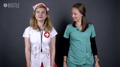 If we learned anything from the Sexy Pizza Rat Halloween costume that went viral earlier this year, it's that if something can be made into a sexy Halloween costume, it will be made into a sexy Halloween costume (see also: sexy Donald Trump). Sexy kitten, sexy lobster, sexy blue crayon, sexy corn on the cob — the longer the list of sexy Halloween costumes goes on, the more ridiculous it becomes. And then, of course, we have the classics — scantily clad police officers with badges that read "Anita Bribe," candy striper nurses waiting to hand out fake shots, and the ever popular sexy school teacher costume, complete with a skin-tight pencil skirt and ripe, red apple. But, uh, how accurate are these outfits, exactly? We had professionals react to sexy Halloween costumes designed to represent them, and the consensus was pretty clear — they're just as ridiculous as any sexy hamburger you might see walking down the street.
