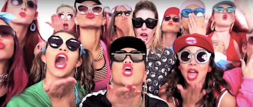 First of all, love the concept of this video. It's an all-girls dance party, where the colorful dancers are giving some serious moves. I had to rewind during five or six separate occasions, I was that captivated. It's a feel-good song with an even feel-better music video. The dancers are clad in pinks, oranges, blues, the rainbow — you name it. Patterns reign supreme, and hats, sunglasses, and hoop earring are all the rage. But the best part? The CROP TOPS.