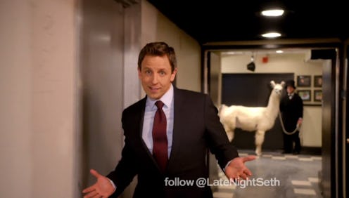 The promo also presents an interesting tidbit of trivia: Apparently, his new studio at 30 Rockefeller Center in NYC is only just down the hall from Saturday Night Live's studio in the building. Whether or not this means he'll be able to make frequent guest appearances on Weekend Update (or SNL stars will be able to make cameos on his Late Night) remains to be seen — for the record, they definitely should — but at least now you know where his studio is for, I don't know, trivia night purposes.
