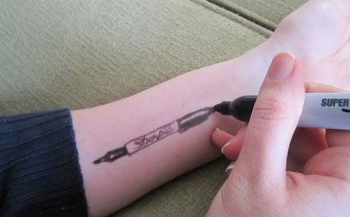 Sharpie’s consumer affairs department employees Heather Cooper and Lola Walker run this nifty little Sharpie blog and broke down the details on Sharpie tattoo safety. They said, “We love that people use the product but we ultimately want everyone to be safe. Although the markers have been tested and are safe for art use by children and adults, we express caution and do not suggest using Sharpie markers on skin.” You've been warned!