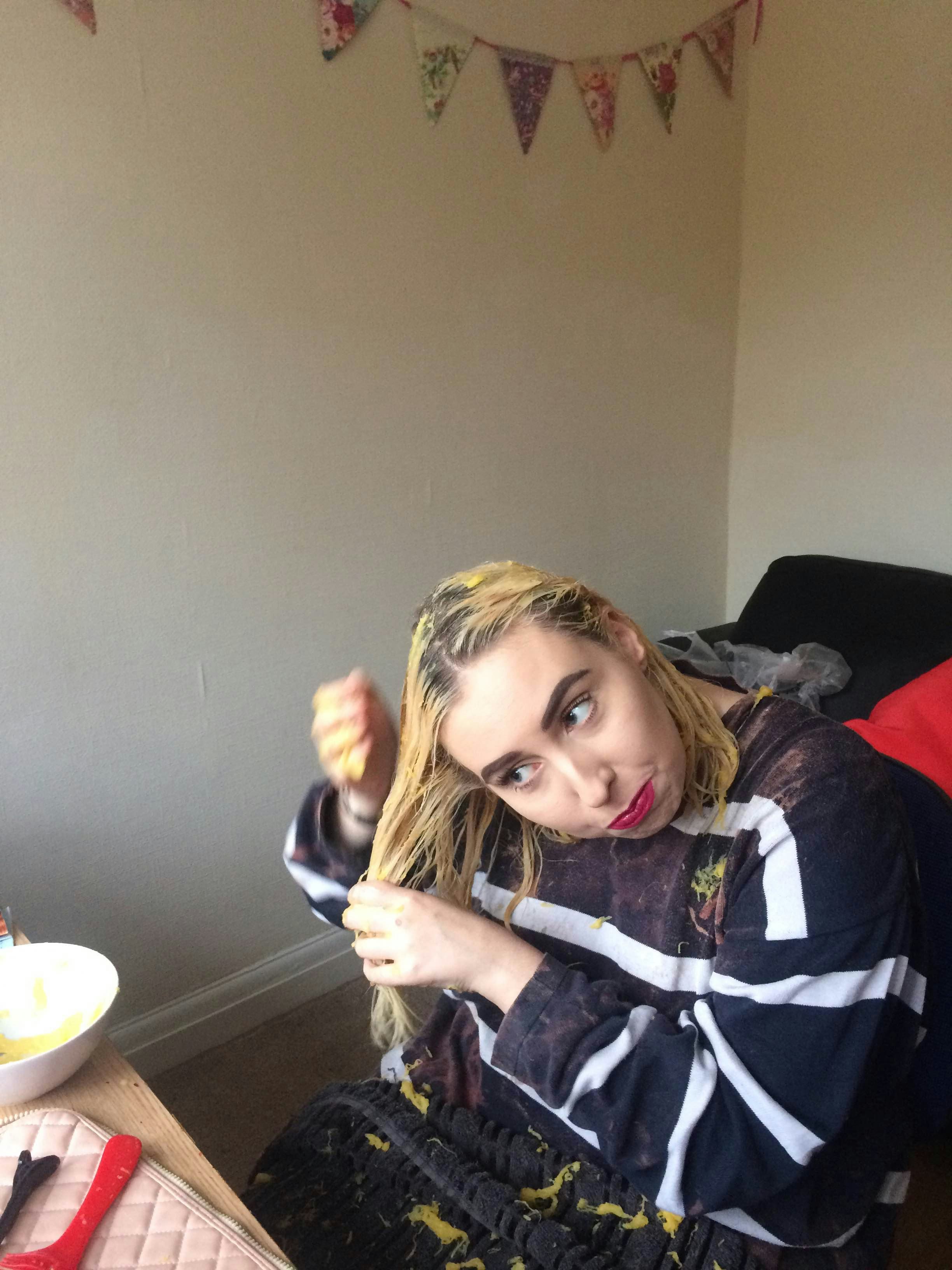 The rest of the ingredients — coconut oil, natural yogurt, and honey — caused me a million times less hassle. If I'm honest, I have no idea where the spice part of this hair mask is meant to be. Is honey considered a spice now? Is that the level of white girl this hair mask is trying to reach? As tempted as I was to throw in some cinnamon, I stayed true to the recipe and brought the bowl of baby sick-lookalike upstairs for my housemate and me to throw on our hair.