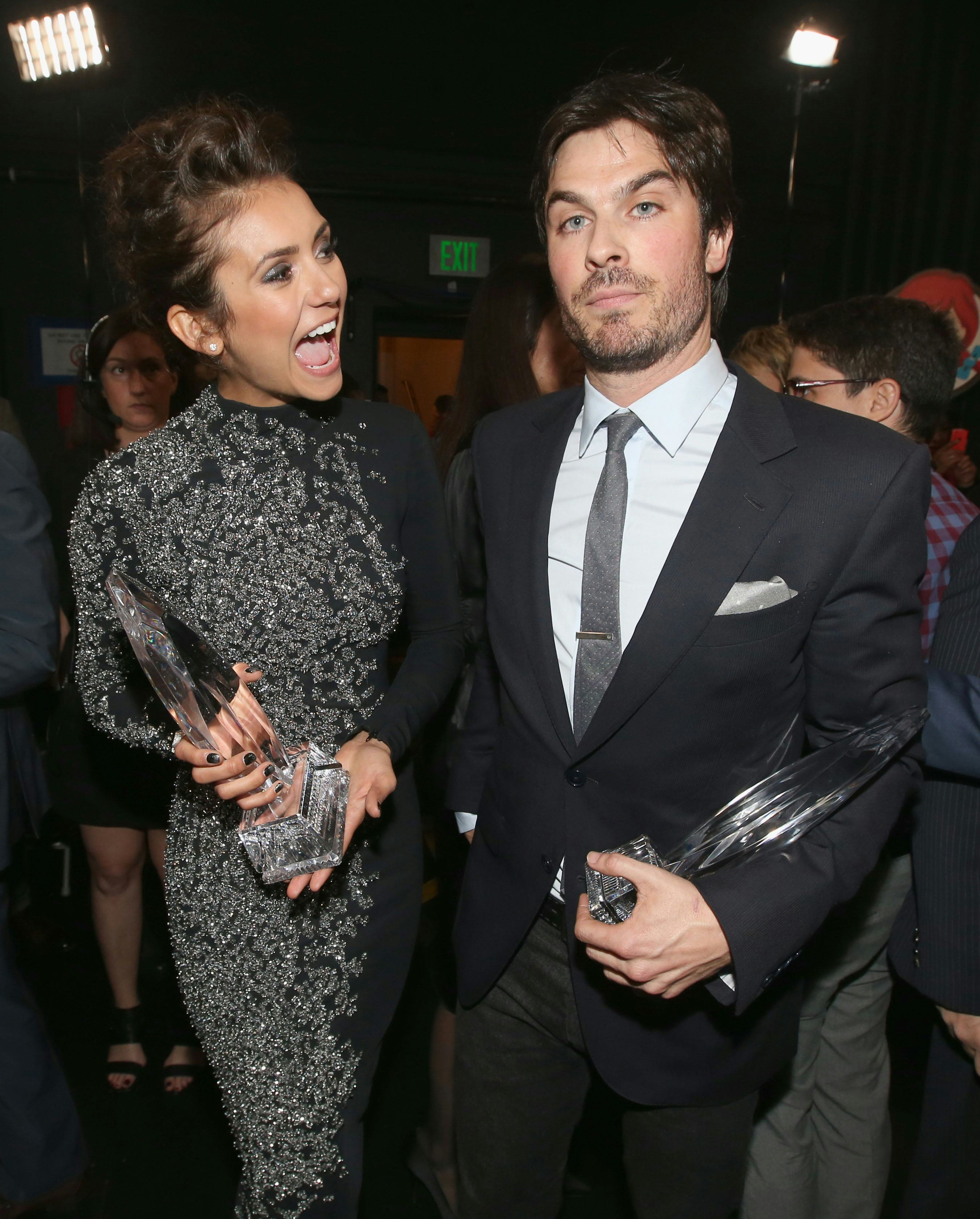 - Nina Dobrev and Ian Somerhalder bantered about how "awkward" it is that they broke up in real life but are still dating on their TV show, but you know they're totally still banging, right?