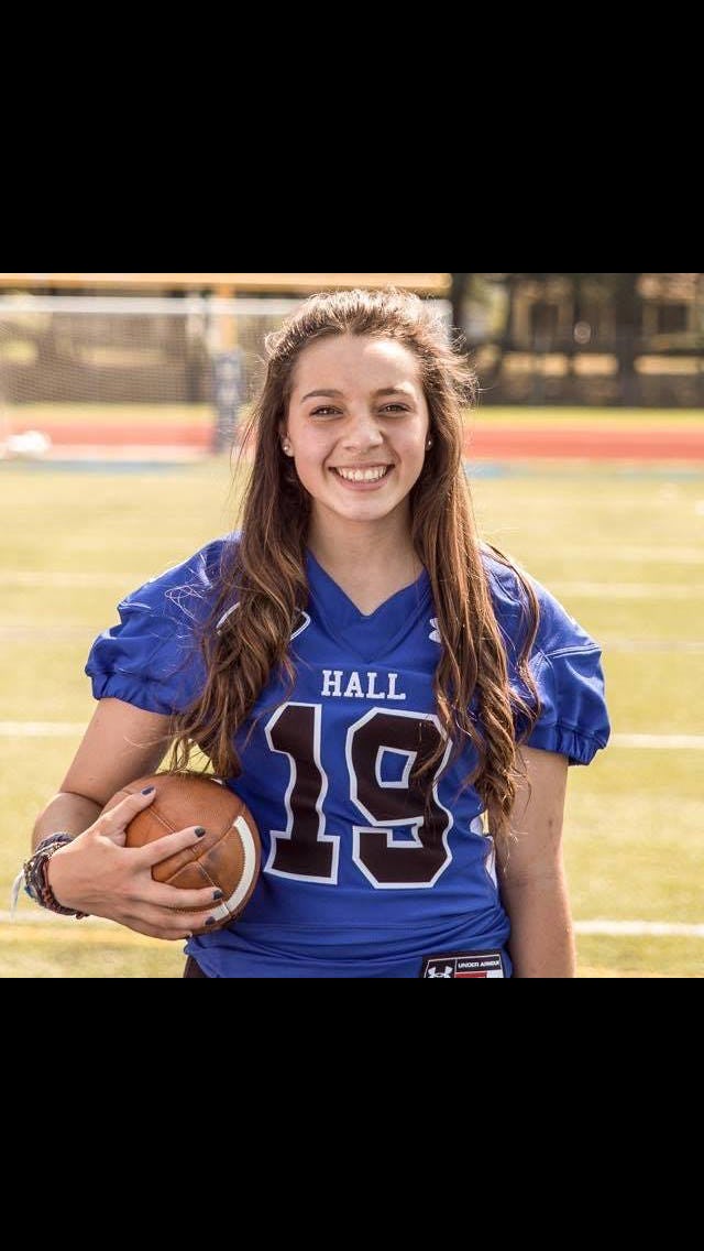 "At the end of every drill," she says, "we do cheers like 'Warriors on three' or 'Hard work on three.' My favorite one is 'Family on three,' because it truly describes what the Hall Football Program is all about. We’re a family on the field and off."
