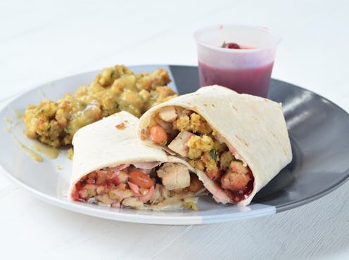 Serve it with a side of more stuffing (duh) and a cranberry sauce Jell-O shot or two. If you're looking to make a ginormous, Chipotle-level burrito, opt for extra large tortilla shells. That way, the burrito can hold all of the Thanksgiving goodness in one go.