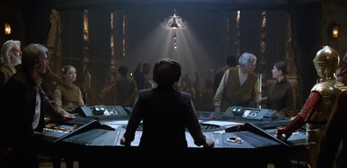 However, things got a just a tiny bit clearer on Thursday, when a new 60 second TV spot for the film was released. Don't get me wrong, the trailer was still hella vague, but it looks like there may have been a quick glimpse of Lourd in the new footage. Near the end of the preview, (at the 0:48 second mark, if you want to get really specific) in a crowded shot that includes Harrison Ford and Fisher, is a blonde girl in the corner who looks strikingly like Lourd.