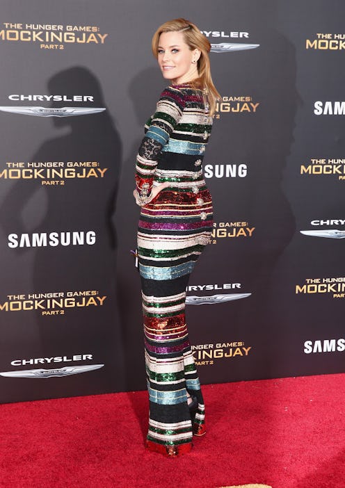 Continuing the tradition killing it on the red carpet, Elizabeth Banks rocked a sequined maxi dress for the latest premiere of the Hunger Games: Mockingjay Part 2, and although the event was held in Los Angeles, where it is never cold, had she been transplanted to a colder climate I bet she would have stayed just as warm. As a Southerner, I can barely function in temperatures below 40 degrees and must turn to guides on the internet to figure out how to dress to survive the next Snowpocalypse, so color me impre. This outfit rounds out the impressive looks that Banks has turned out so far, including one memorable ensemble that channeled Effie Trinket, and it is also an excellent source of inspiration for those holiday parties you're got coming up.