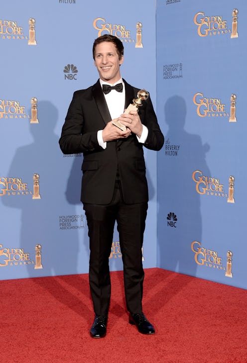 You guys. YOU GUYS. Andy Samberg won the 2014 Golden Globe Award for Best Actor— Television Series Musical or Comedy. I repeat: Andy Samberg has a Golden Globe. EVERYTHING IS AMAZING. Brooklyn Nine-Nine is now an award-winning show (as it should be). EVERYTHING IS AMAZING. One third of The Lonely Island beat out big time actors like Jim Parsons, Don Cheadle, Jason Bateman, and Michael J. Fox. You could call it an "upset" (because, like I said, those other four are big names), but I'm not upset. No shade to the other dudes, but I really hoped Andy Samberg would win the award. And he did!