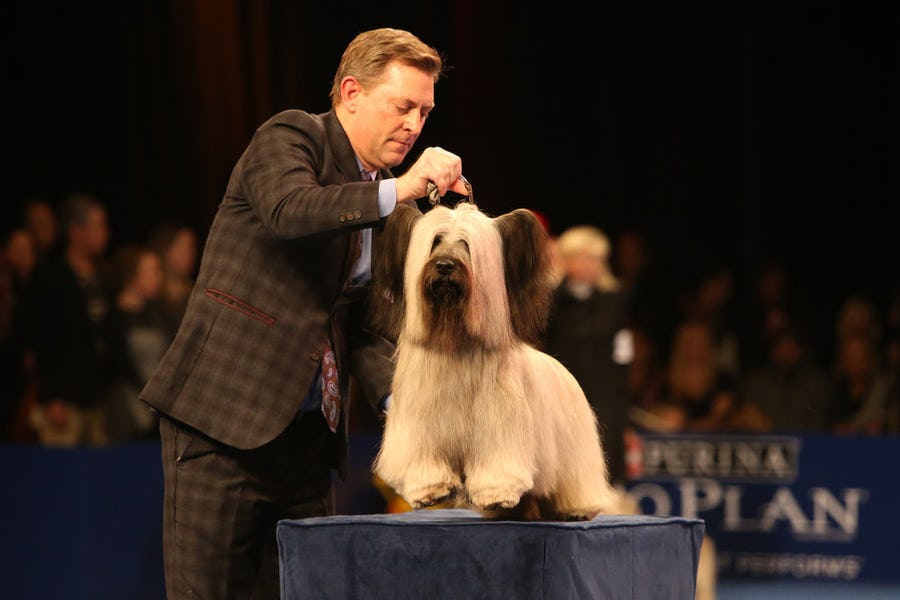 Look at that coat move! It's putting every time I judged the "twirl-ability" of a new dress as a little girl to shame. Charlie almost looks as if he's floating across the floor. In an email to People, National Dog Show host David Frei said that "not only a great Skye terrier and a great show dog, but Charlie is fun for everyone. He makes us all smile as we look at those big ears, his beautiful coat... and his happy personality." Here is an interview NBC did with Charlie's handler, Larry Cornelius, and his whole squad after they won.