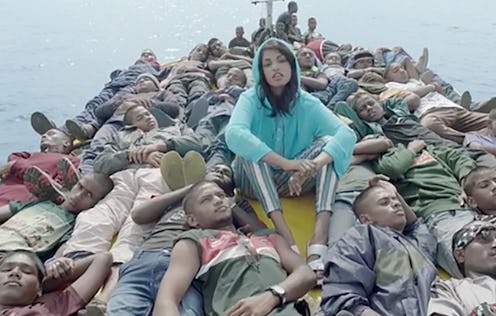The badass, beautiful M.I.A. dropped her video for “Borders” on Friday on Apple Music with little fanfare, but it’s got everyone talking. As it should: in the cinematic, self-directed music video for her first single off her forthcoming LP Matahdatah, M.I.A. directly and aggressively tackles the Syrian refugee crisis. M.I.A. performs “Borders” while taking a refugee’s journey; the video shows hundreds of refugees traveling on cramped boats and climbing over barbed wire fences.