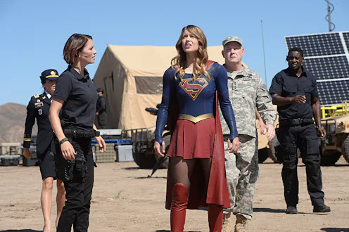 So what does all that mean for the version of General Sam Lane that will appear on Supergirl? Well, according to the official synopsis for "Red Faced" it seems like the General's actions on the show won't be too far off from his time commanding Project 7734. The Red Tornado that Supergirl faces is "a military cyborg commissioned by ... General Sam Lane." Plus, a promo clip from "Red Faced" offers additional details about Red Tornado and the General's feelings about having "foreign assistance" from Supergirl. Per General Lane and the scientist that developed Red Tornado, it is an "anti-insurgent combat device," or more specifically, an "anthropomorphic pseudo entity with combat capabilities" — so it's a bit more complex than a robot.
