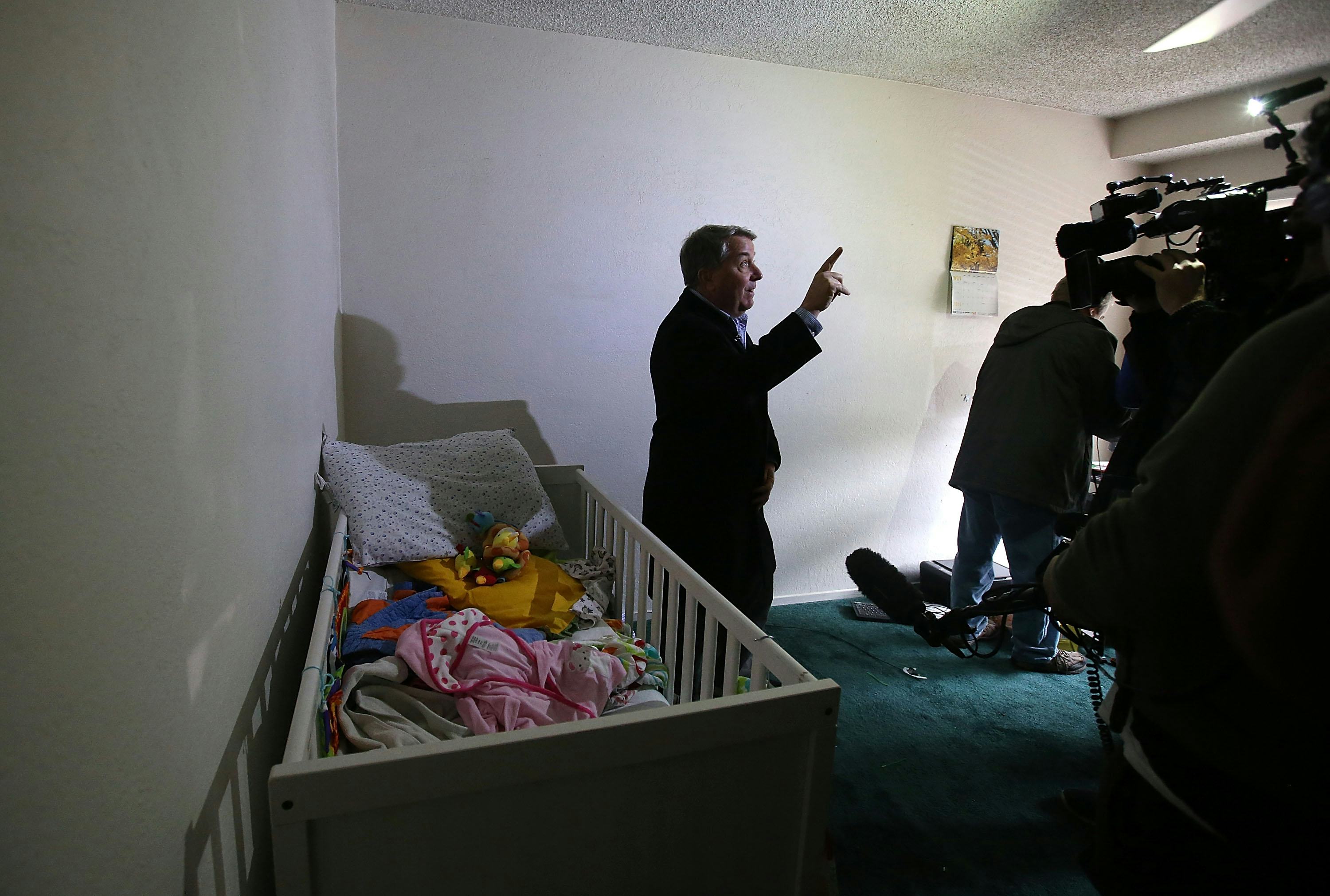 Both Farook and Malik were killed in a shootout with the police Wednesday, leaving behind their six-month-old daughter, who the couple left with Farook's mother before allegedly killing 14 people and wounding 21. The live broadcasts showed the baby's crib and toys, religious texts, and papers scattered throughout the apartment. CNN correspondent Stephanie Elam showed viewers a hole in the ceiling of a closet she said was made by investigators. She said on air: "I've seen passports. I’ve seen drivers' license. There are signs that this room has been ransacked before the media got here."