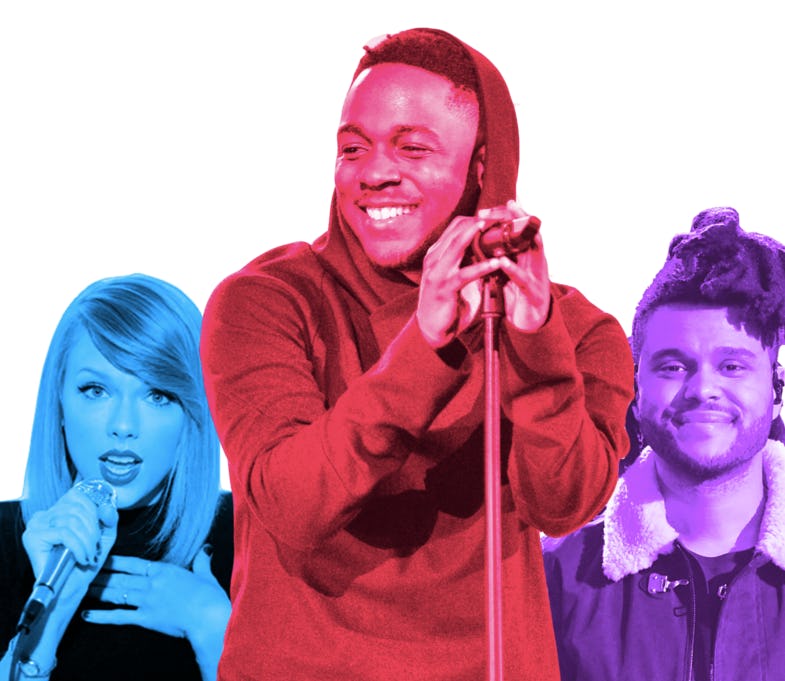 I think it's safe to say that Lamar, Swift, and The Weeknd are all celebrating as the leaders of most noms for the 2016 Grammys and I can't blame them.