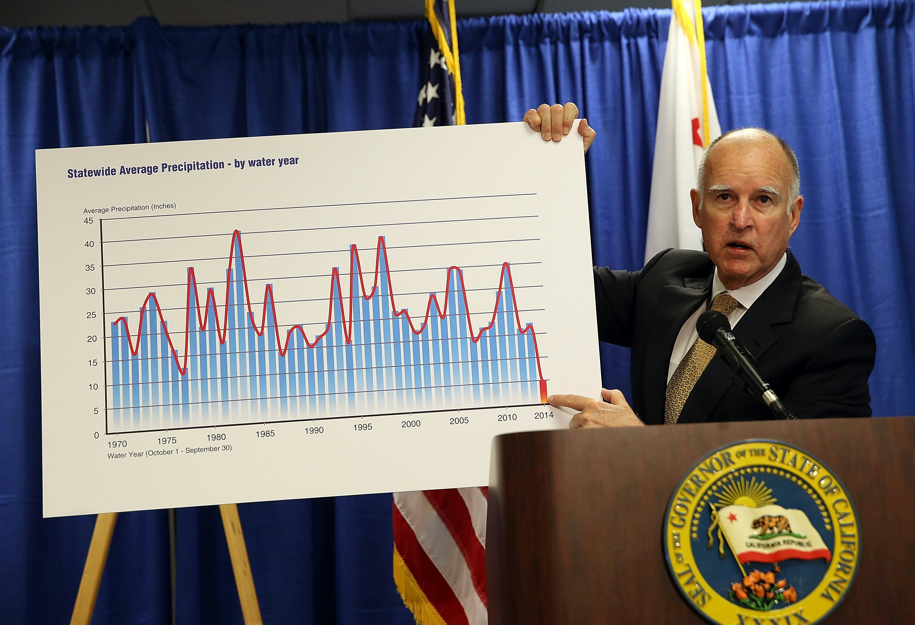 "All I can report to you is it's not raining today and it's not likely to rain for several weeks," Brown said at a press conference in San Francisco. “We are in an unprecedented, very serious situation.”